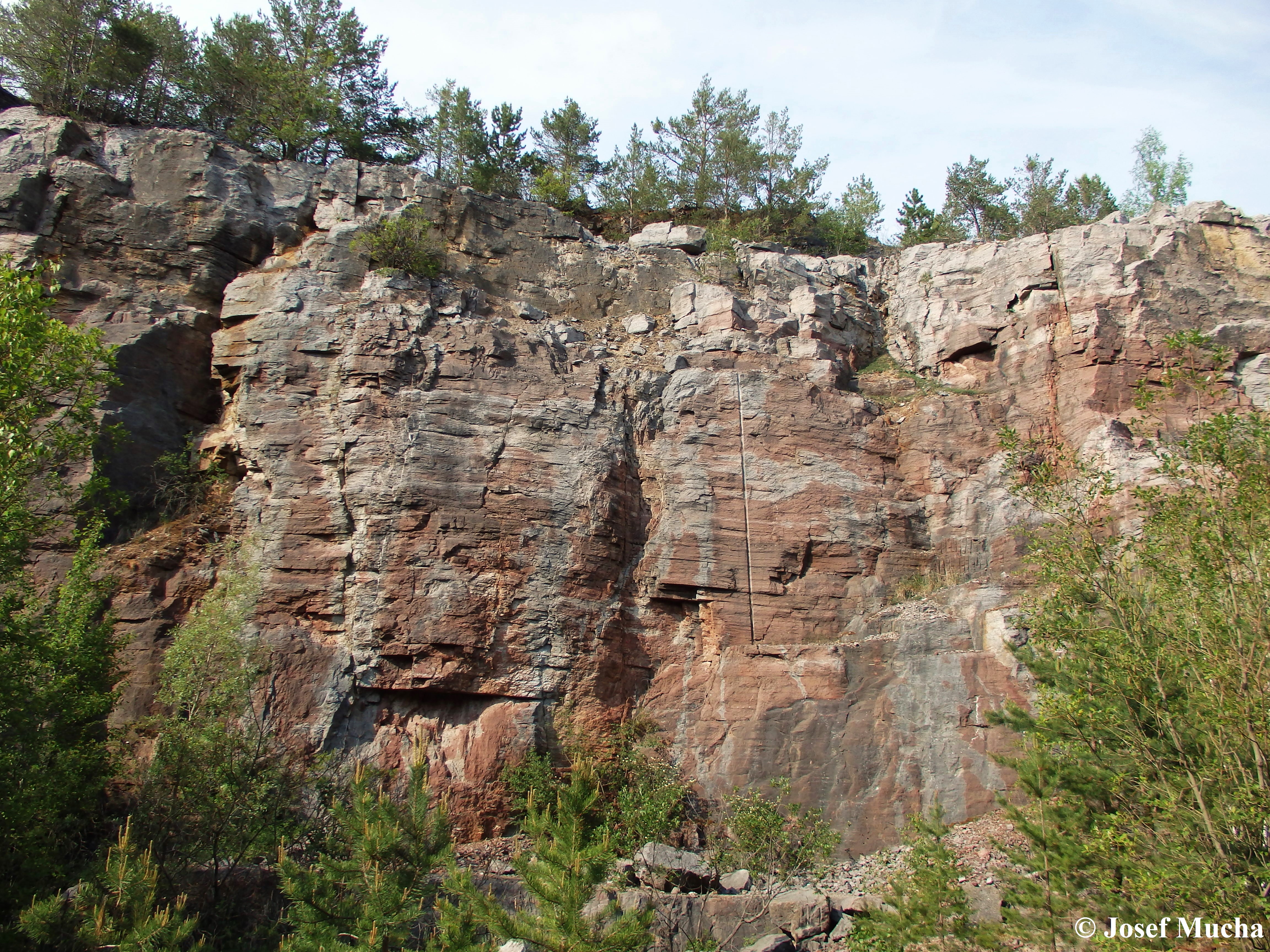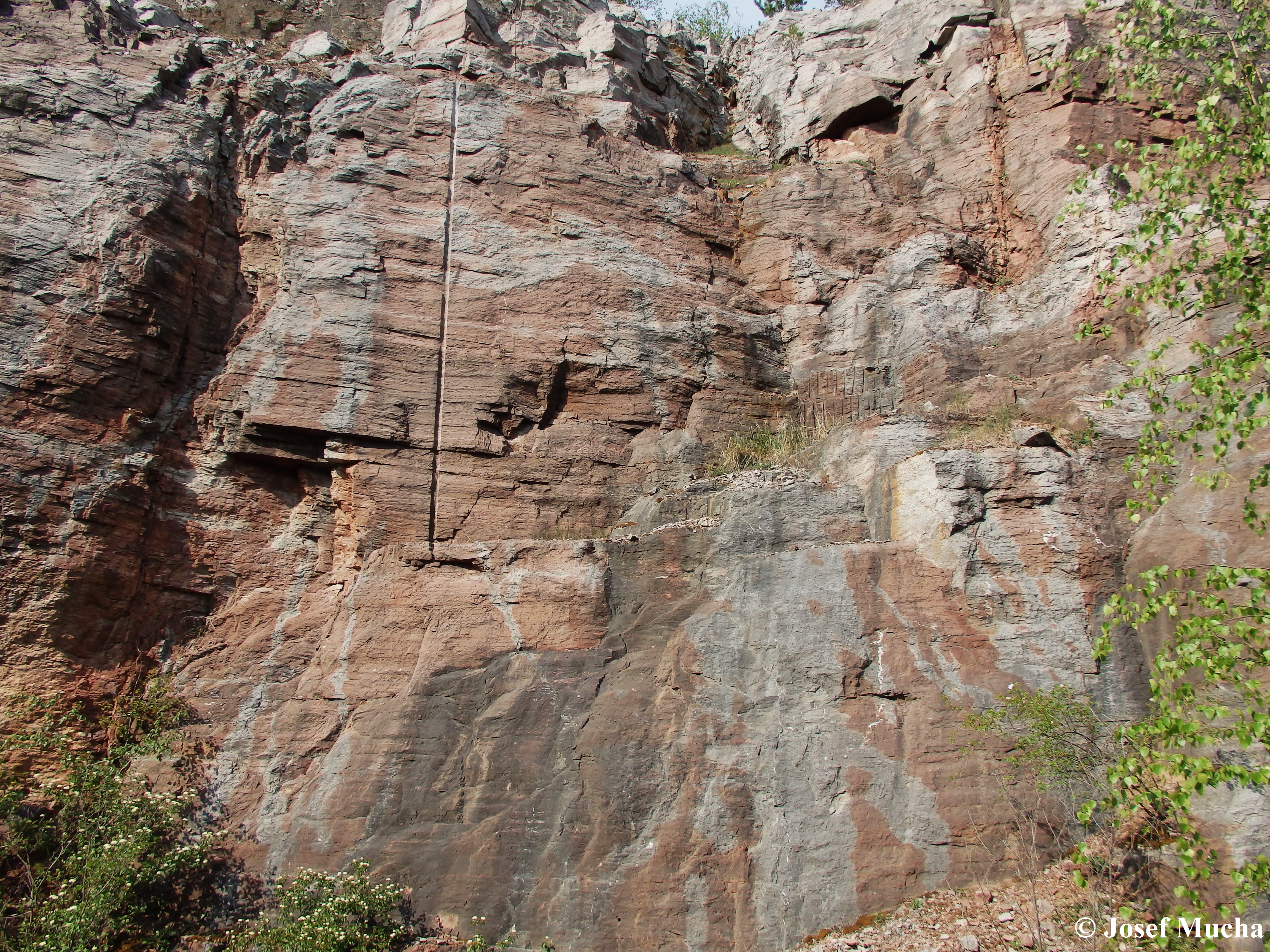 Jámový vápencový lom, nacházející se kousek od Koněpruských jeskyní v Českém krasu, je významný tím, že byl jedním z našich největších paleontologů a geologů doktorem Ivo Chlupáčem v roce 1957 stanoven jako stratotyp, tedy vybraný vzorový geologický profil, pro samostatnou stratigrafickou jednotku zvanou suchomastské vápence. Tyto vápence se vytvářely ve starších prvohorách (paleozoikum), ve spodním devonu z období dalej (cca 400 mil.let) v teplém mělkovodním mořském prostředí plném korálových útesů. Na útesech byl velmi hojný mořský život (koráli, graptoliti, nautiloidi, lilijice, trilobiti, pancéřnaté ryby neboli placodermi). Český masiv (pod pojmem Český masiv si zjednodušeně představme Čechy a Moravu) v té době ještě neexistoval jako celek, ale byl rozdroben na menší ostrovní mikrokontinenty (v jeden celek byly mikrokontinenty spojeny až o cca 50 mil.let později při variském vrásnění), které se nacházely v subtropickém pásmu na jižní polokouli Země. Suchomastské vápence jsou zřetelně vrstevnaté, červené a šedé (obsahují 87 – 96 % CaCO3). Jsou tedy poměrně velmi čisté a často obsahují drť ze zkamenělin. Suchomastské vápence se nacházejí pouze v Českém krasu. Zdejší lom je velmi starého data, písemně je těžba doložena z roku 1828, ale těžilo se zde jistě již mnohem dříve. Lom často měnil majitele, těžba zde skomírala a nakonec skončila v 70. letech 20. století. Lomu dominuje mohutná stěna o délce cca 150 metrů a výšce cca 20 – 25 metrů. Ve výplních krasových dutin byly paleontology a archeology nalezeny fosílie třetihorních živočichů.